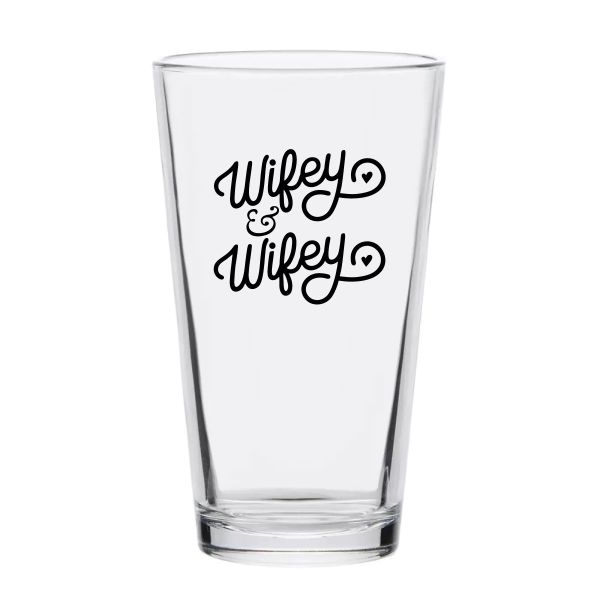 Personalized 16 oz Custom Pint Glasses - Wifey & Wifey - Customized Pint Glasses