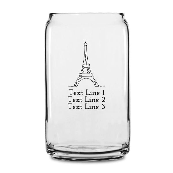 Personalized 16 oz Custom Can Shaped Glass - Abstract Eiffel Tower - Customized Can Glasses