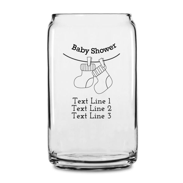 Personalized 16 oz Custom Can Shaped Glass - Baby Showers Hanging Socks - Customized Can Glasses