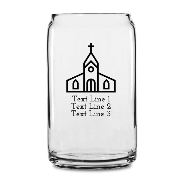 Personalized 16 oz Custom Can Shaped Glass - Church - Customized Can Glasses