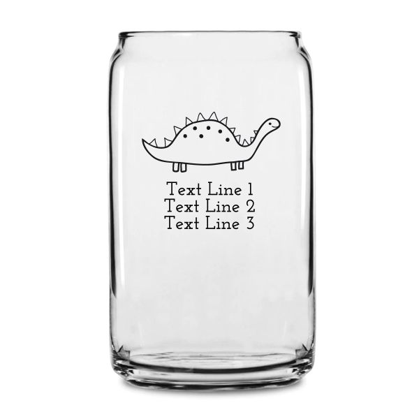 Personalized 16 oz Custom Can Shaped Glass - Cute Stegosaurus - Customized Can Glasses