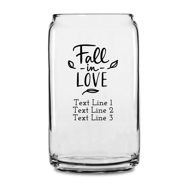 Personalized 16 oz Custom Can Shaped Glass - Fall in Love - Customized Can Glasses