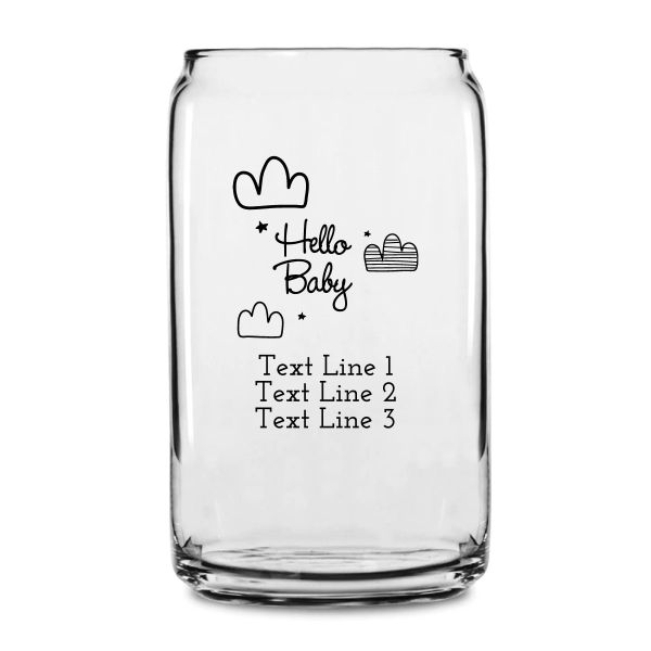 Personalized 16 oz Custom Can Shaped Glass - Hello Baby Clouds - Customized Can Glasses