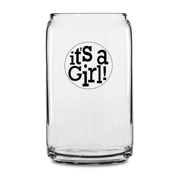 Personalized 16 oz Custom Can Shaped Glass - It's a Girl! Circle - Customized Can Glasses