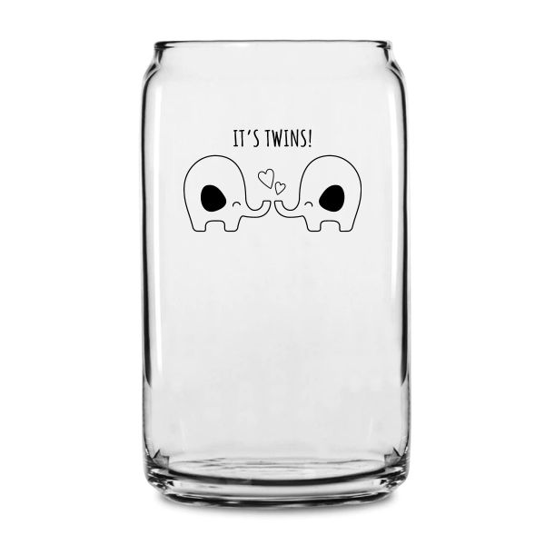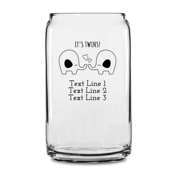 Personalized 16 oz Custom Can Shaped Glass - It's Twins Print Elephants - Customized Can Glasses