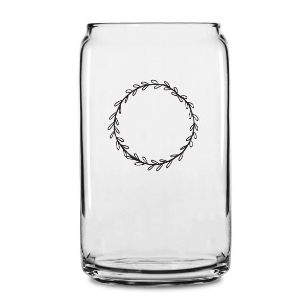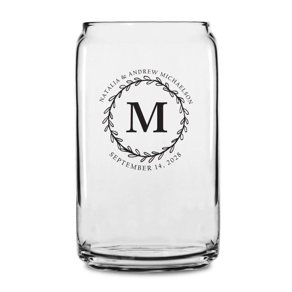 Personalized 16 oz Custom Can Shaped Glass - Large Laurel Monogram - Customized Can Glasses