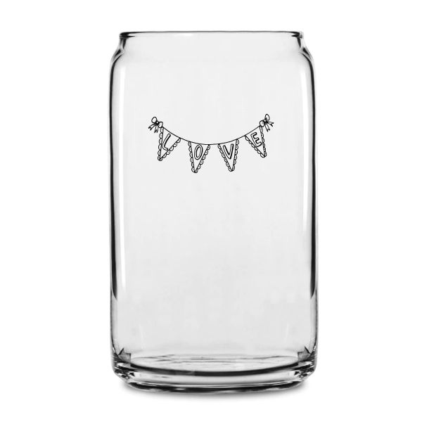 Personalized 16 oz Custom Can Shaped Glass - Love Flag Banner - Customized Can Glasses