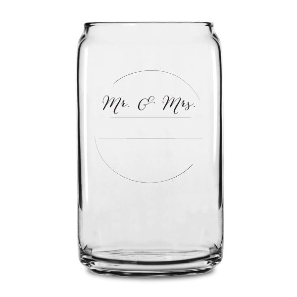 Personalized 16 oz Custom Can Shaped Glass - Mr. & Mrs. Circle Stamp No.3 - Customized Can Glasses