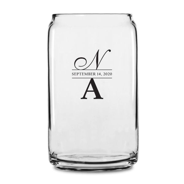 Personalized 16 oz Custom Can Shaped Glass - Script & Print Initials - Customized Can Glasses