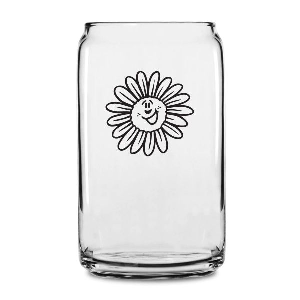 Personalized 16 oz Custom Can Shaped Glass - Smiling Flower - Customized Can Glasses