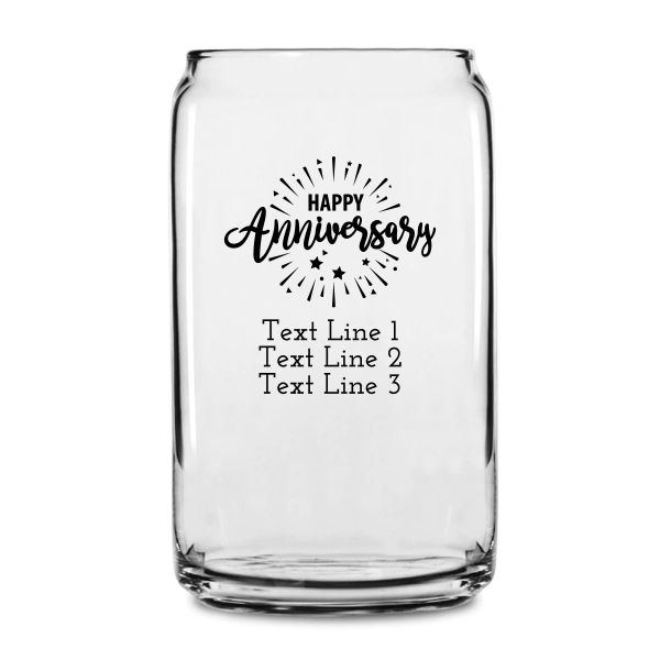 Personalized 16 oz Custom Can Shaped Glass - Starburst Happy Anniversary - Customized Can Glasses