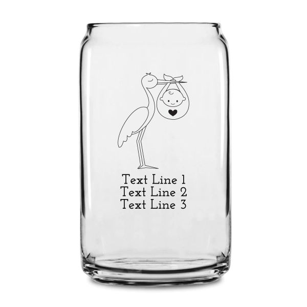 Personalized 16 oz Custom Can Shaped Glass - Stork with Baby - Customized Can Glasses