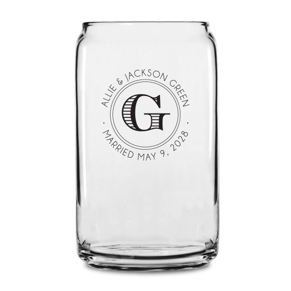 Personalized 16 oz Custom Can Shaped Glass - Initial Circle Stamp - Customized Can Glasses