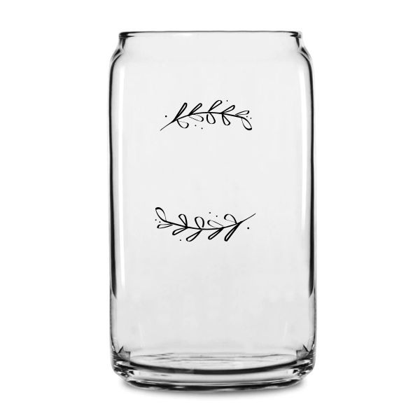 Personalized 16 oz Custom Can Shaped Glass - Laurel Leaf Drawing Initials - Customized Can Glasses