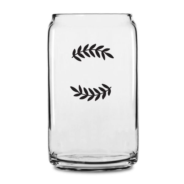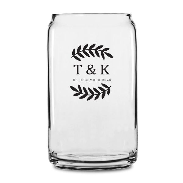 Personalized 16 oz Custom Can Shaped Glass - Laurel Leaf Large Type Initials - Customized Can Glasses