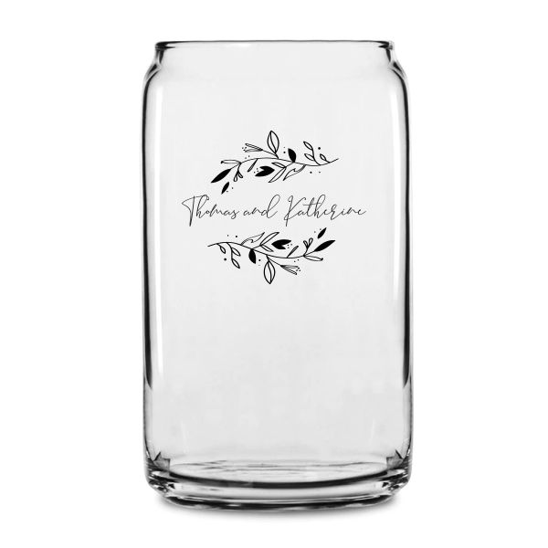 Personalized 16 oz Custom Can Shaped Glass - Signature with Leaves - Customized Can Glasses