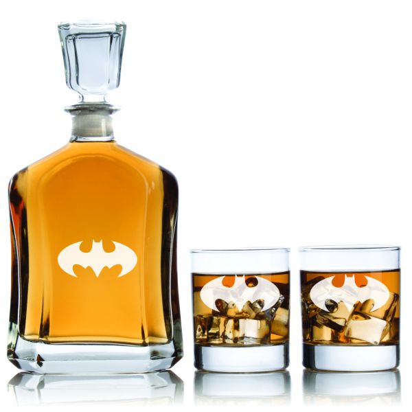 Personalized Batman - Personalized Capital Decanter Set with Whiskey Glasses - Superhero Theme Set