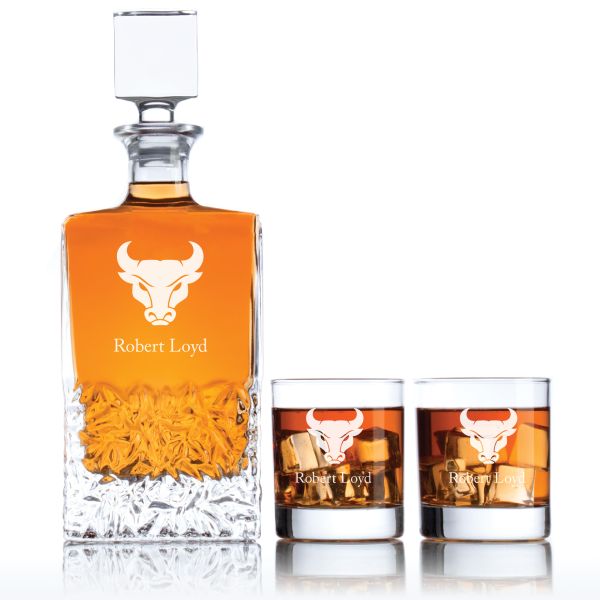 Personalized Buffalo Bulls University Decanter Set - Football Fanatic Gift Ideas - Excalibur Personalized Whiskey Decanter