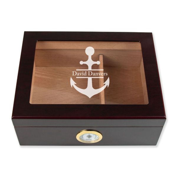 Personalized Cigar Humidor - Anchor - Man Cave Gift Ideas - Gifts For Him