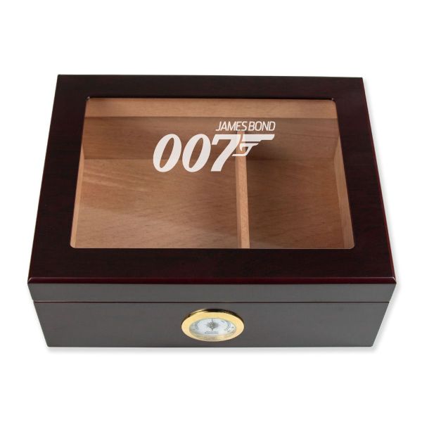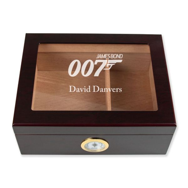 Personalized Cigar Humidor - Engraved 007 James Bond Logo Design - Man Cave Gift Ideas - Gifts For Him