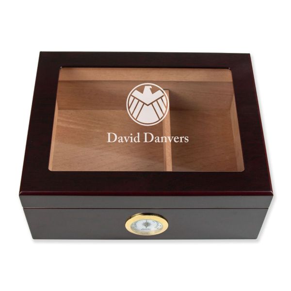 Personalized Cigar Humidor - Engraved Agents of Shield Logo Design