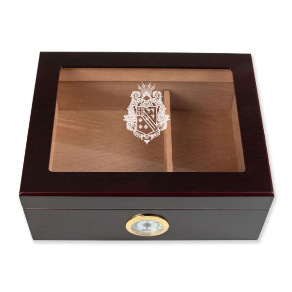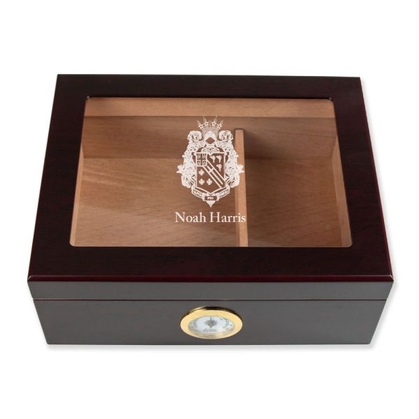 Personalized Cigar Humidor - Engraved Alpha Phi Omega Coat of Arms