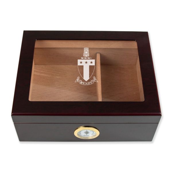 Personalized Cigar Humidor - Engraved Alpha Tau Omega Coat of Arms