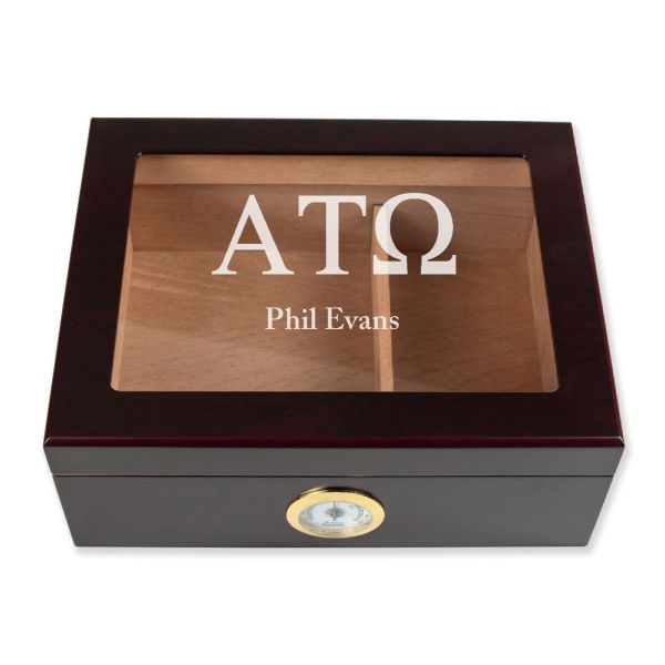 Personalized Cigar Humidor - Engraved Alpha Tau Omega