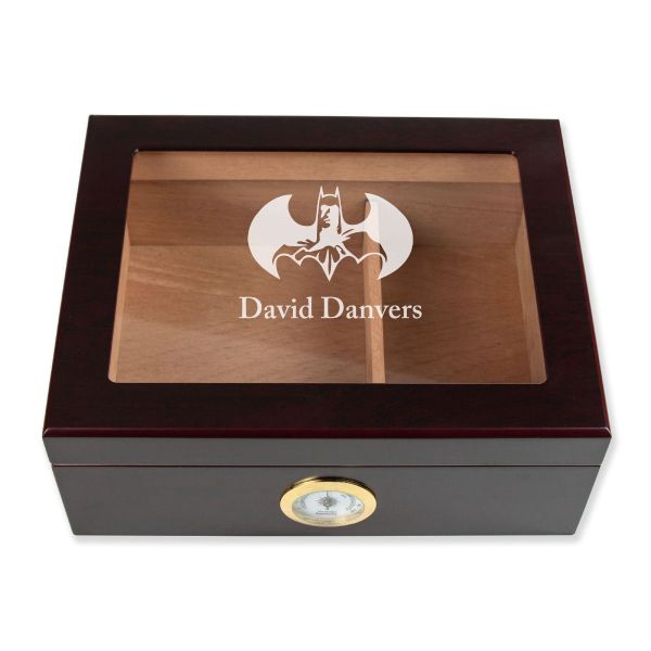 Personalized Cigar Humidor - Engraved Batman and Silhouette Logo Design - Man Cave Gift Ideas - Gifts For Him