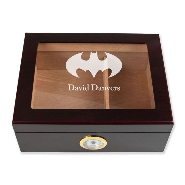Personalized Cigar Humidor - Engraved Classic Batman Logo Design