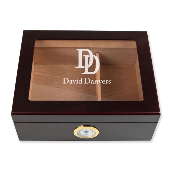 Personalized Cigar Humidor - Engraved Dare Devil Logo Design - Man Cave Gift Ideas - Gifts For Him