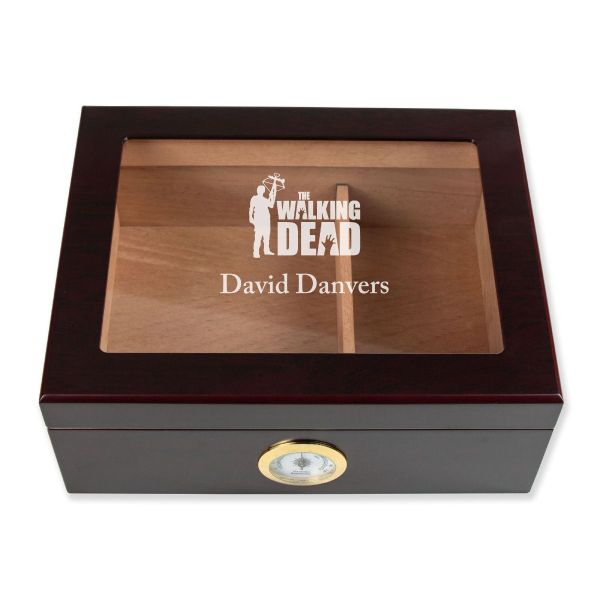 Personalized Cigar Humidor - Engraved Daryl Dixon Walking Dead Logo Design - Man Cave Gift Ideas - Gifts For Him
