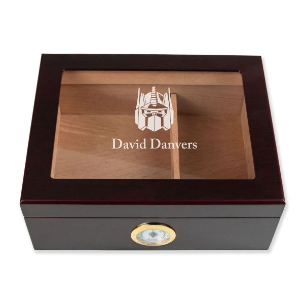 Personalized Cigar Humidor - Engraved Optimus Prime Logo Design - Man Cave Gift Ideas - Gifts For Him