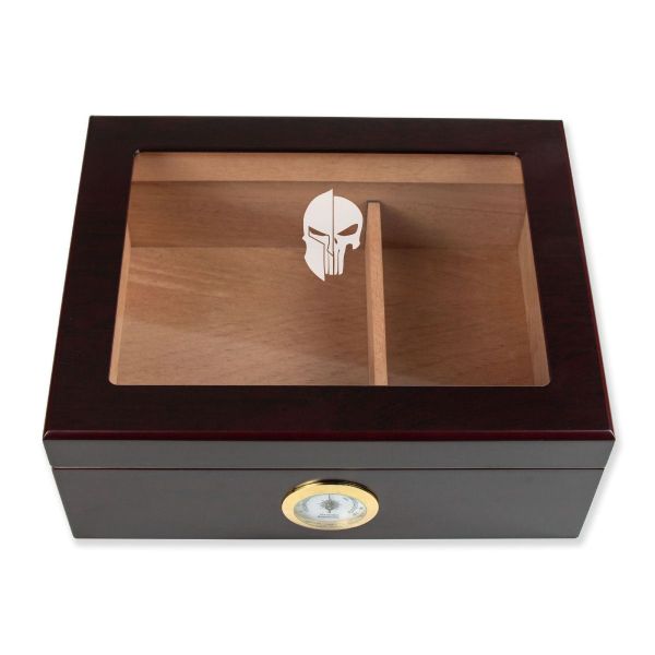 Personalized Cigar Humidor - Engraved Spartan Punisher Logo Design - Man Cave Gift Ideas - Gifts For Him