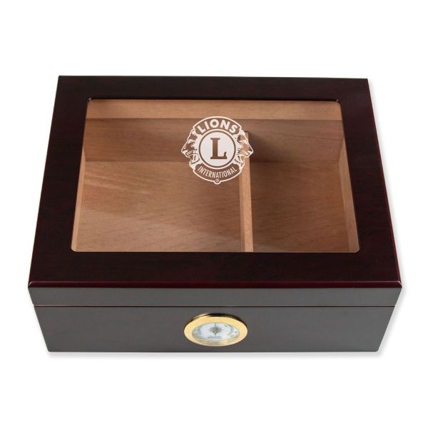 Personalized Cigar Humidor - Engraved Lions Club International Logo Design