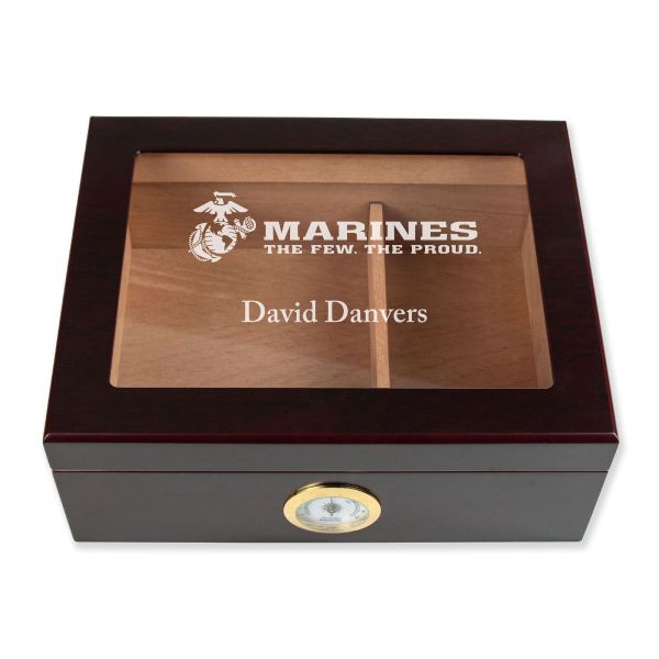 Personalized Cigar Humidor - Engraved Marines The Few The Proud Logo Design - Man Cave Gift Ideas - Gifts For Him