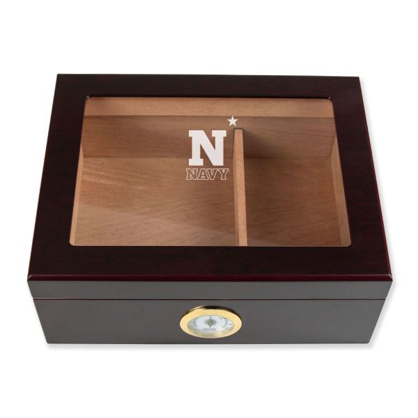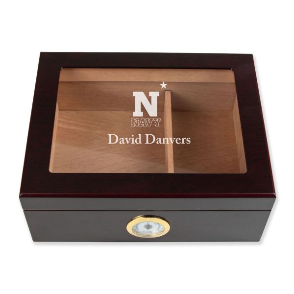 Personalized Cigar Humidor - Engraved Navy Athletics Team Logo Design