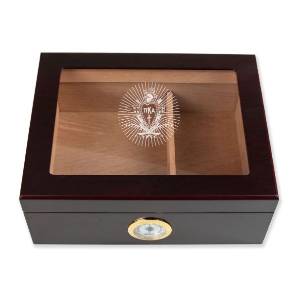 Personalized Cigar Humidor - Engraved Pi Kappa Alpha Coat of Arms