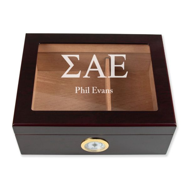 Personalized Cigar Humidor - Engraved Sigma Alpha Epsilon