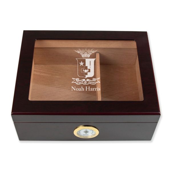 Personalized Cigar Humidor - Engraved Sigma Phi Epsilon Coat of Arms