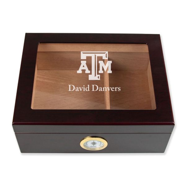 Personalized Cigar Humidor - Engraved Texas A&M Team Logo Design