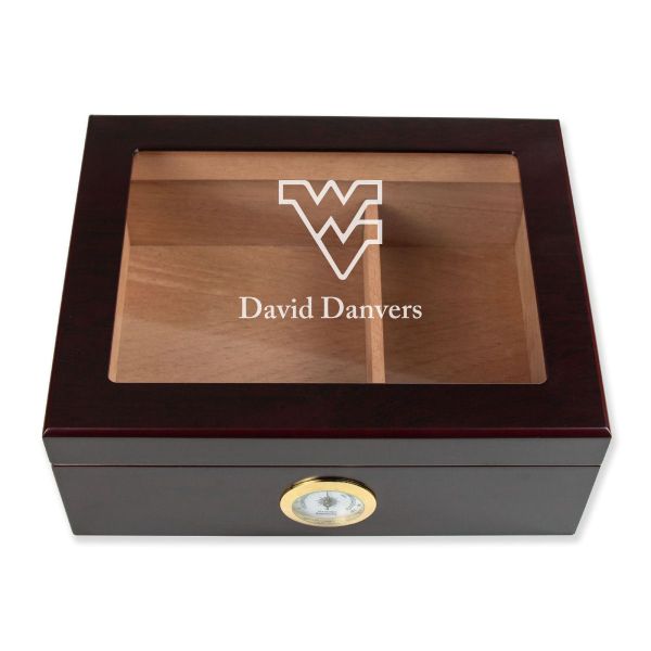 Personalized Cigar Humidor - Engraved West Virginia Mountaineers Team Logo Design