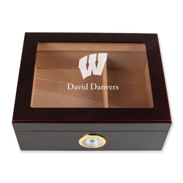 Personalized Cigar Humidor - Engraved Wisconsin Badgers Team Logo Design