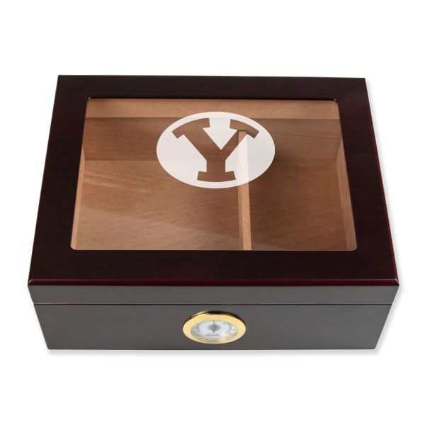 Personalized Cigar Humidor - Engraved Y Initial Brigham Young Cougars Team Logo Design