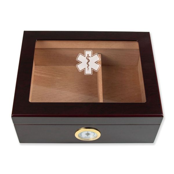 Personalized Cigar Humidor - Star of Life Logo Design - Man Cave Gift Ideas - Gifts For Him