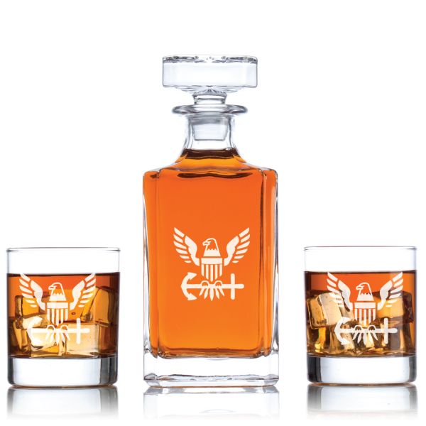 Personalized NAVY Eagle With Anchor Decanter Set - Military Gift Ideas - Gifts For Him - Man Cave Gifts