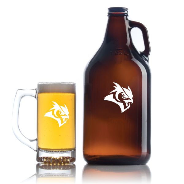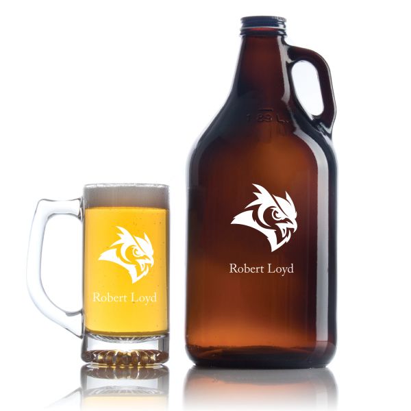 Personalized Rice Owls Football Growler Set - Football Fanatic Gift Ideas - Personalized Amber Growler with Cap - Includes Beer Glass