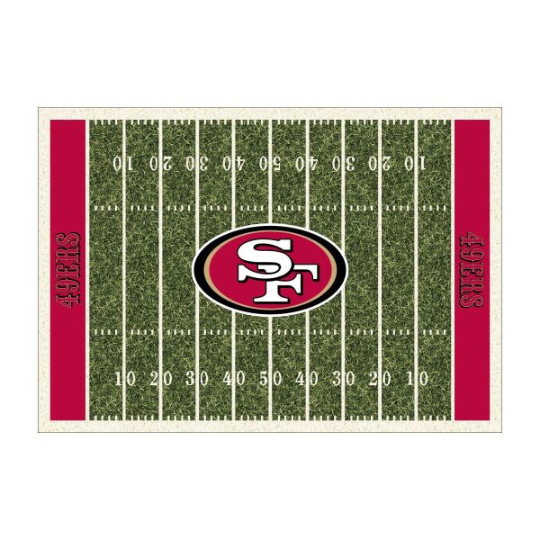 Show your team spirit with this officially licensed San Francisco 49ers area rug, styled to resemble a football field! Made with premium Stainmaster nylon fiber, this rug is fade resistant, durable and easy to care for. Endura-Loc high performance backing helps assure the rug always lies flat and serged edges give your rug the quality that your home and team deserve.