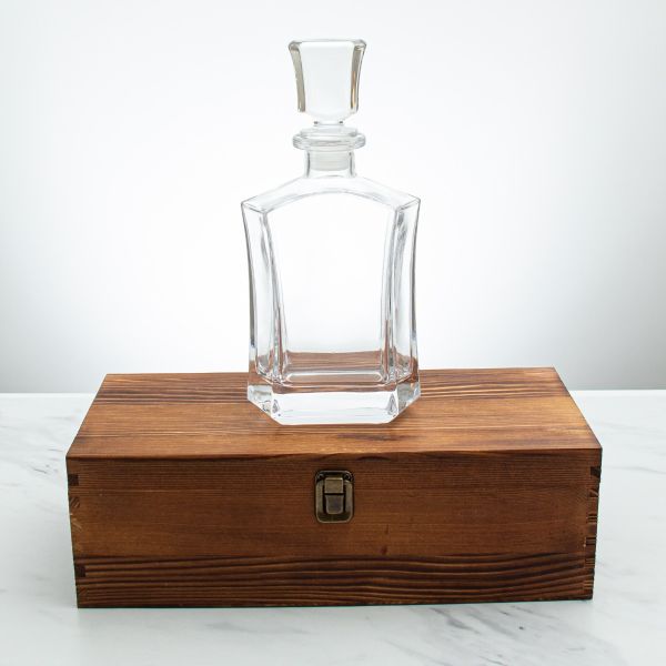 This decanter presented in a wood box offers a refined and luxurious packaging solution that elevates the overall experience. The rustic natural wood adds warmth and sophistication, making it perfect for corporate gifts, special occasions, or premium branding. The combination of glass and wood creates a timeless aesthetic that speaks to quality and craftsmanship.