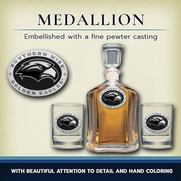 Southern Miss Golden Eagles - Capitol Decanter with 2 Double Old Fashioned Glasses in Chest
